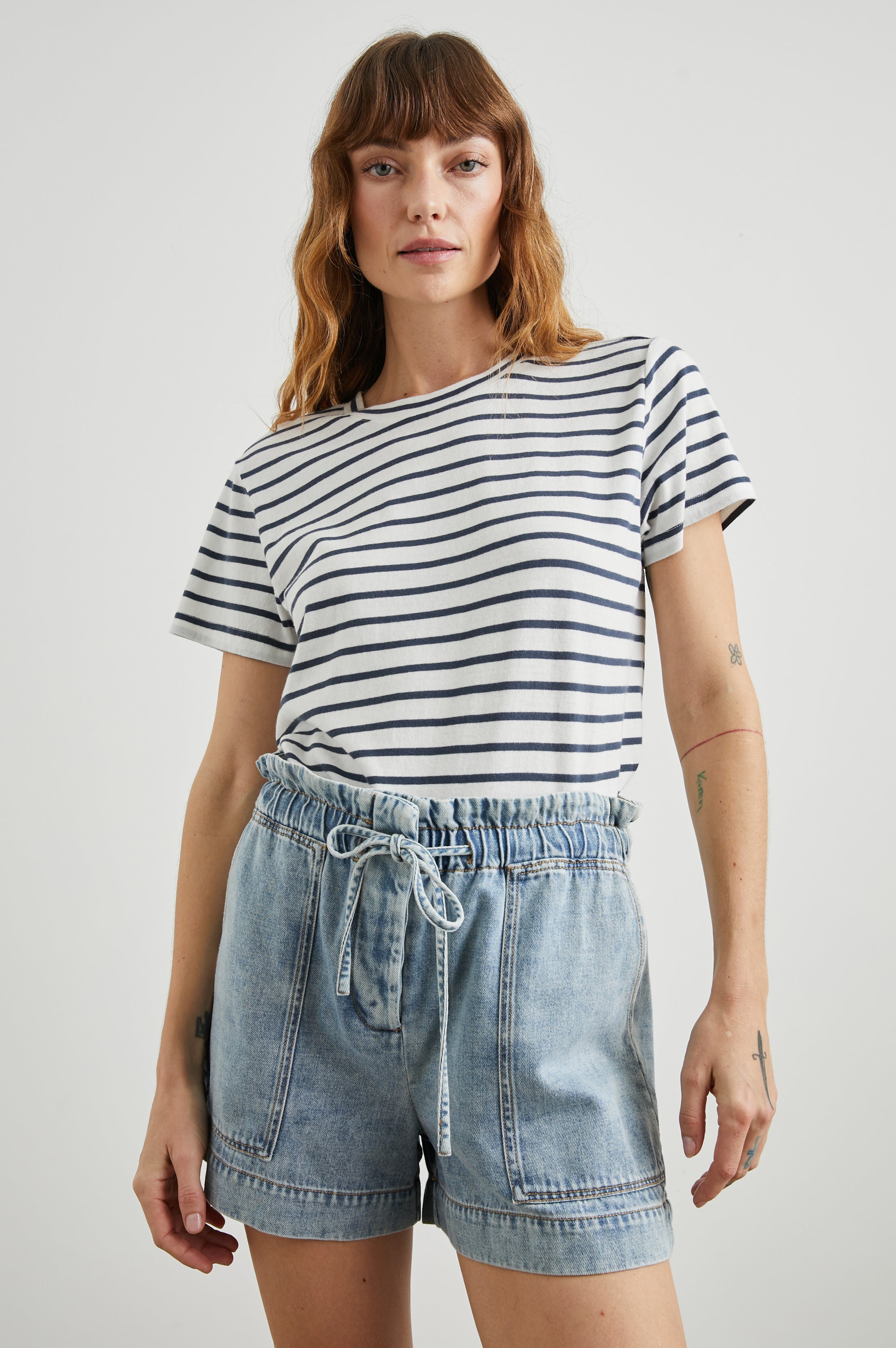 THE CLASSIC CREW T-SHIRT - IVORY NAVY STRIPE