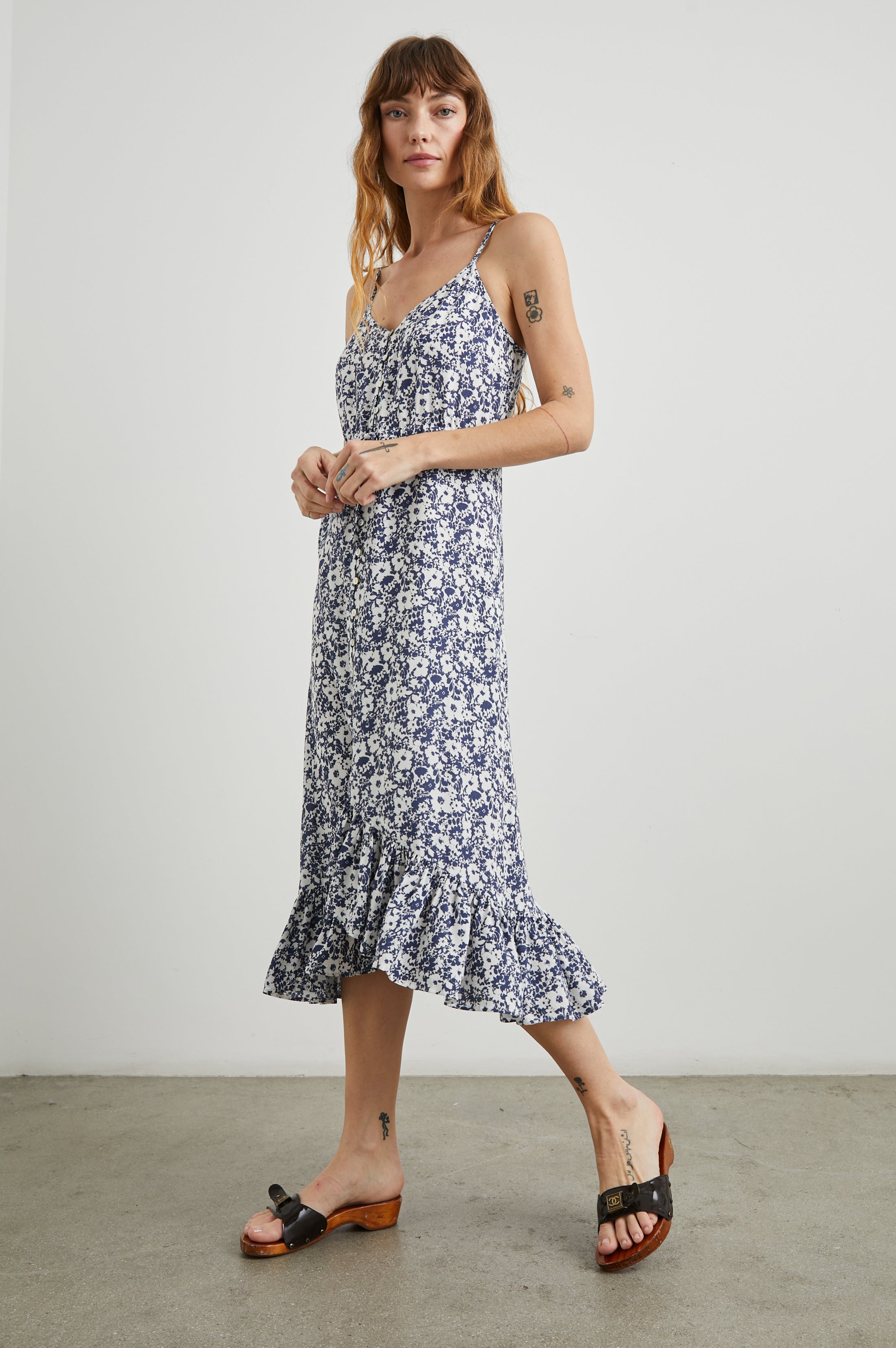 FRIDA DRESS - NAVY WHITE TEXTURE FLORAL