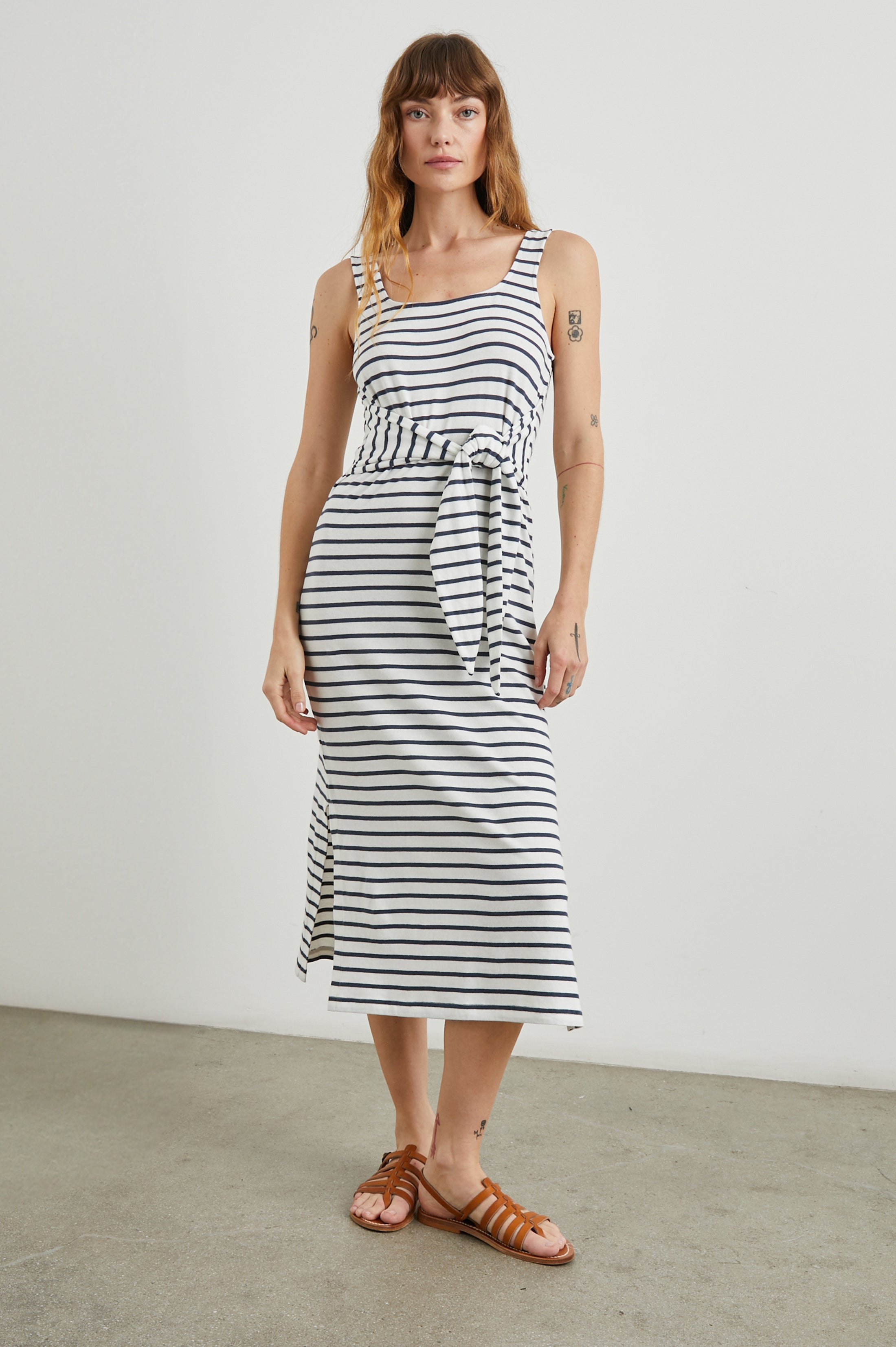MEG DRESS - IVORY NAVY STRIPE