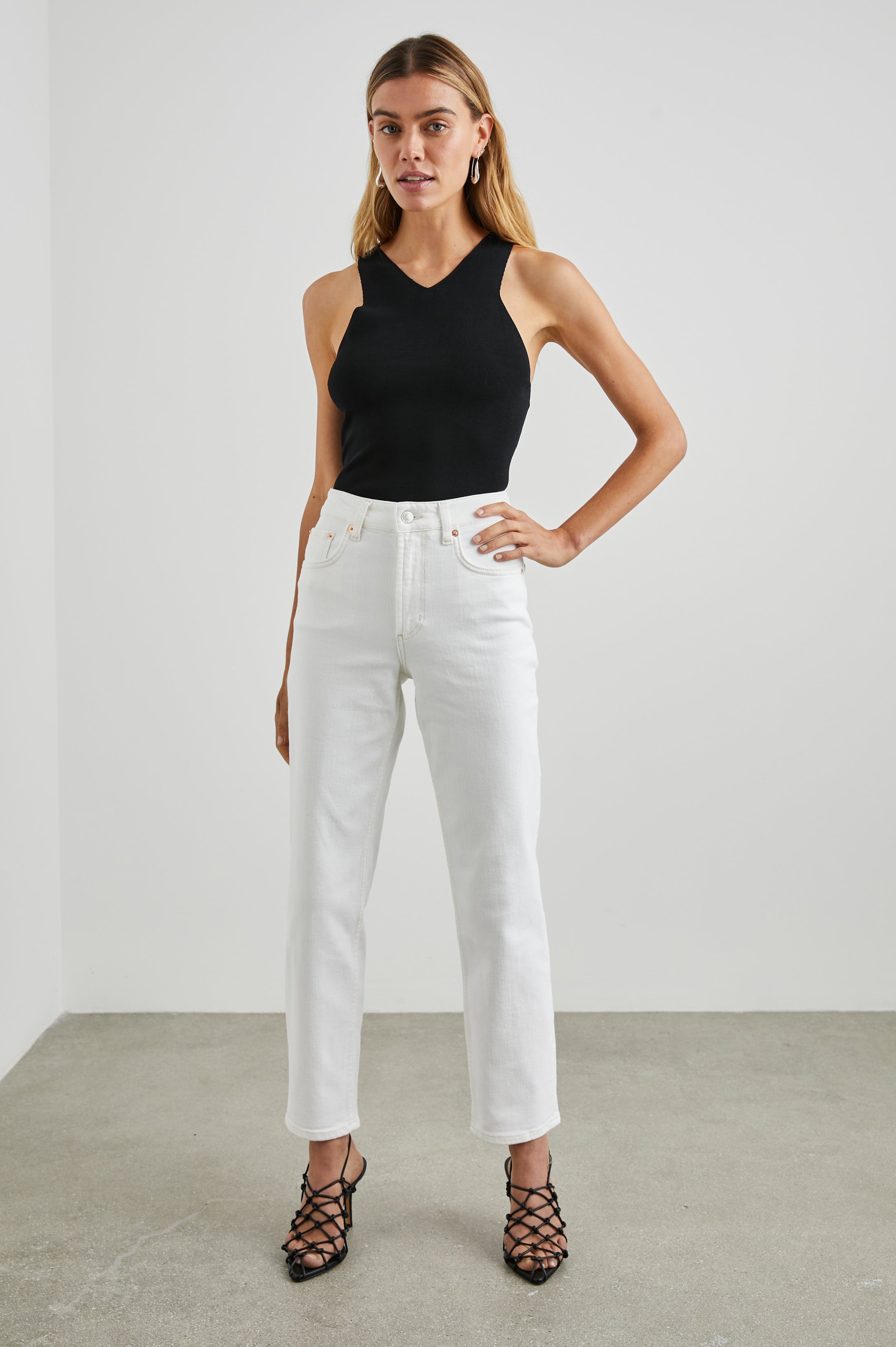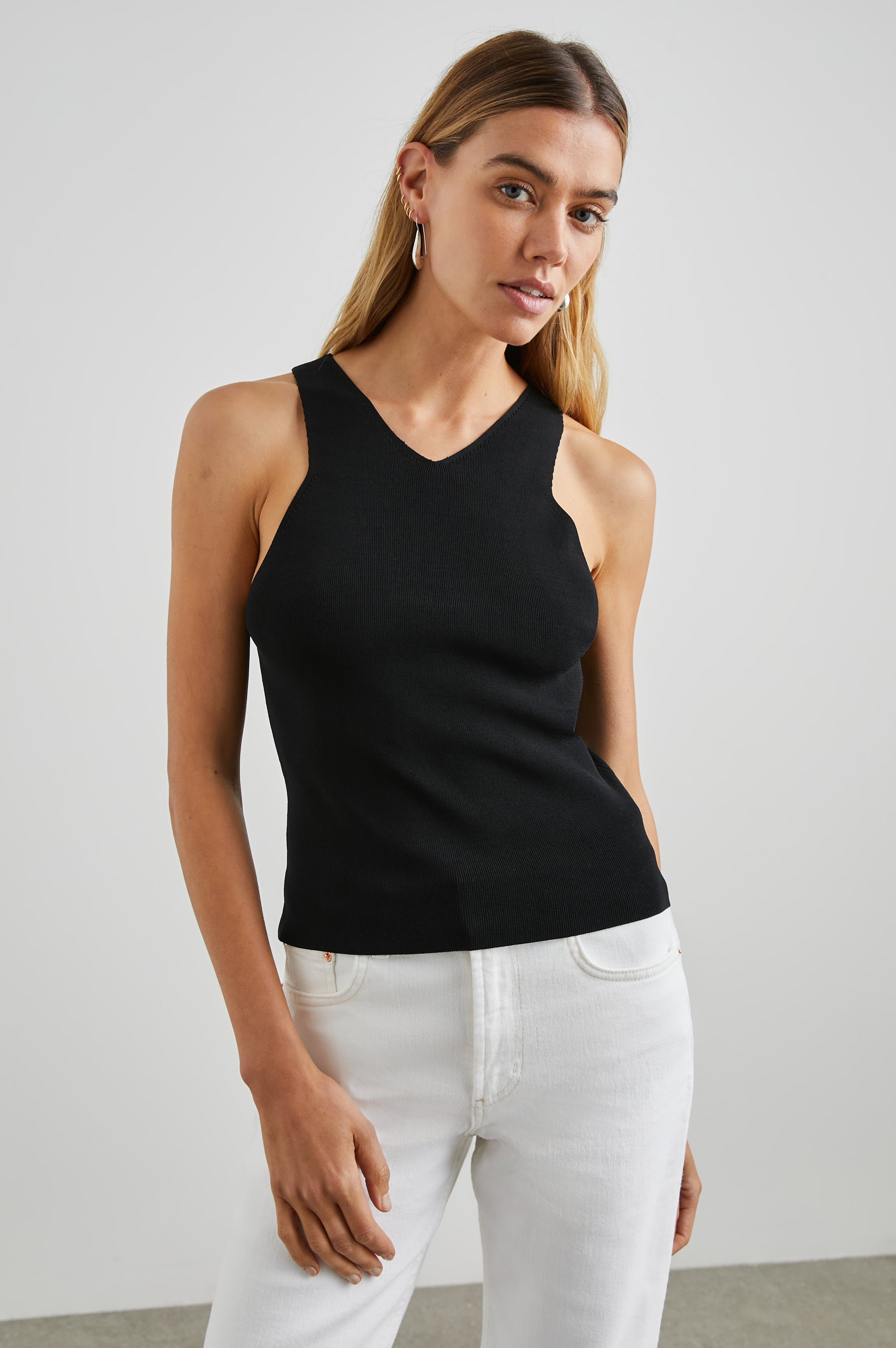 A simple silhouette that's been cut to perfection. Made from super soft novelty fabric, Ally pairs well with a wide array of warm-weather bottoms.