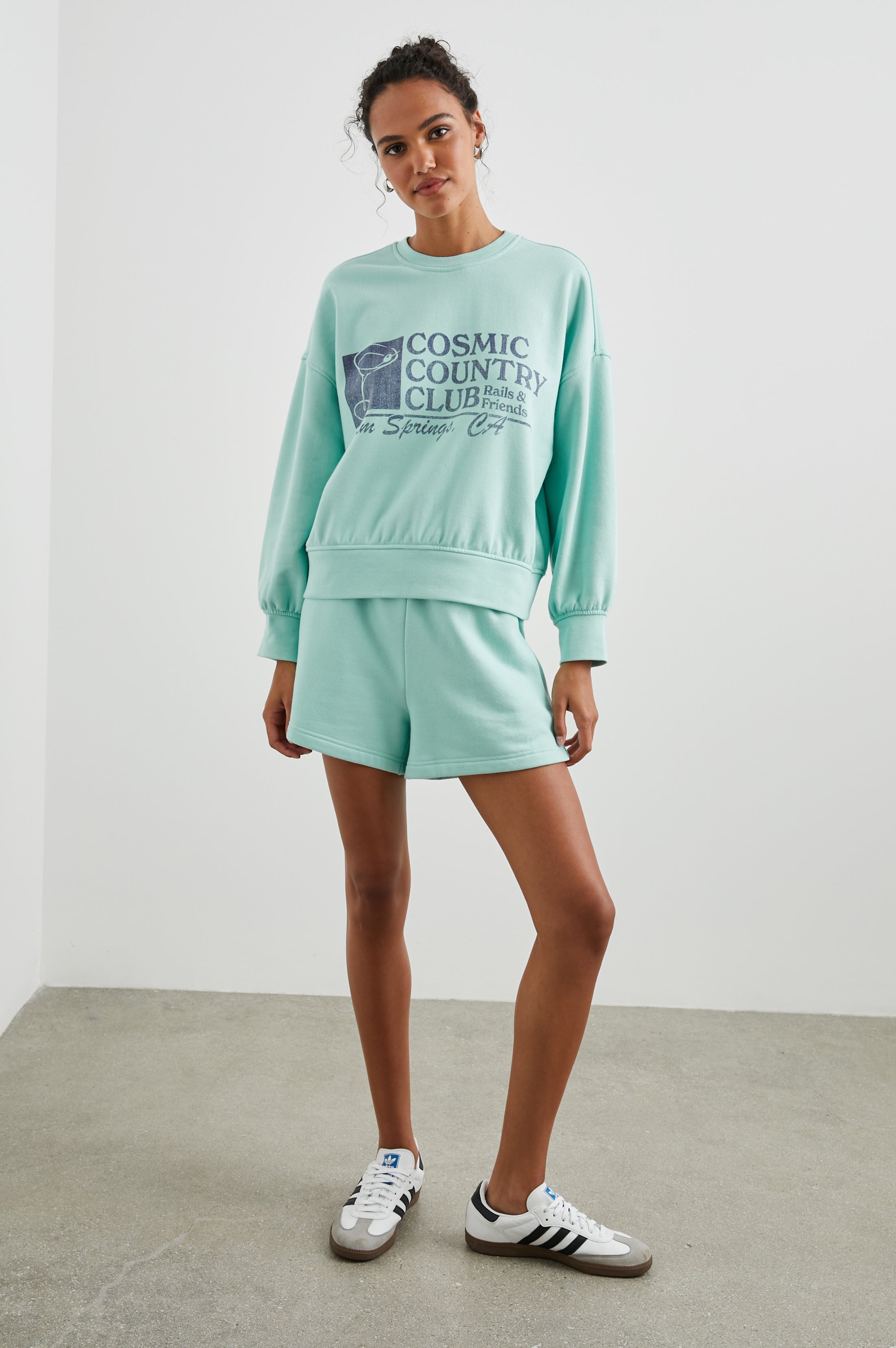 This sweatshirt features a retro Palm Springs print— wear it for the soft-beyond-belief french terry makeup.