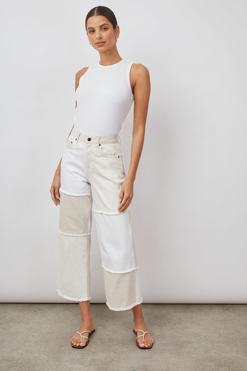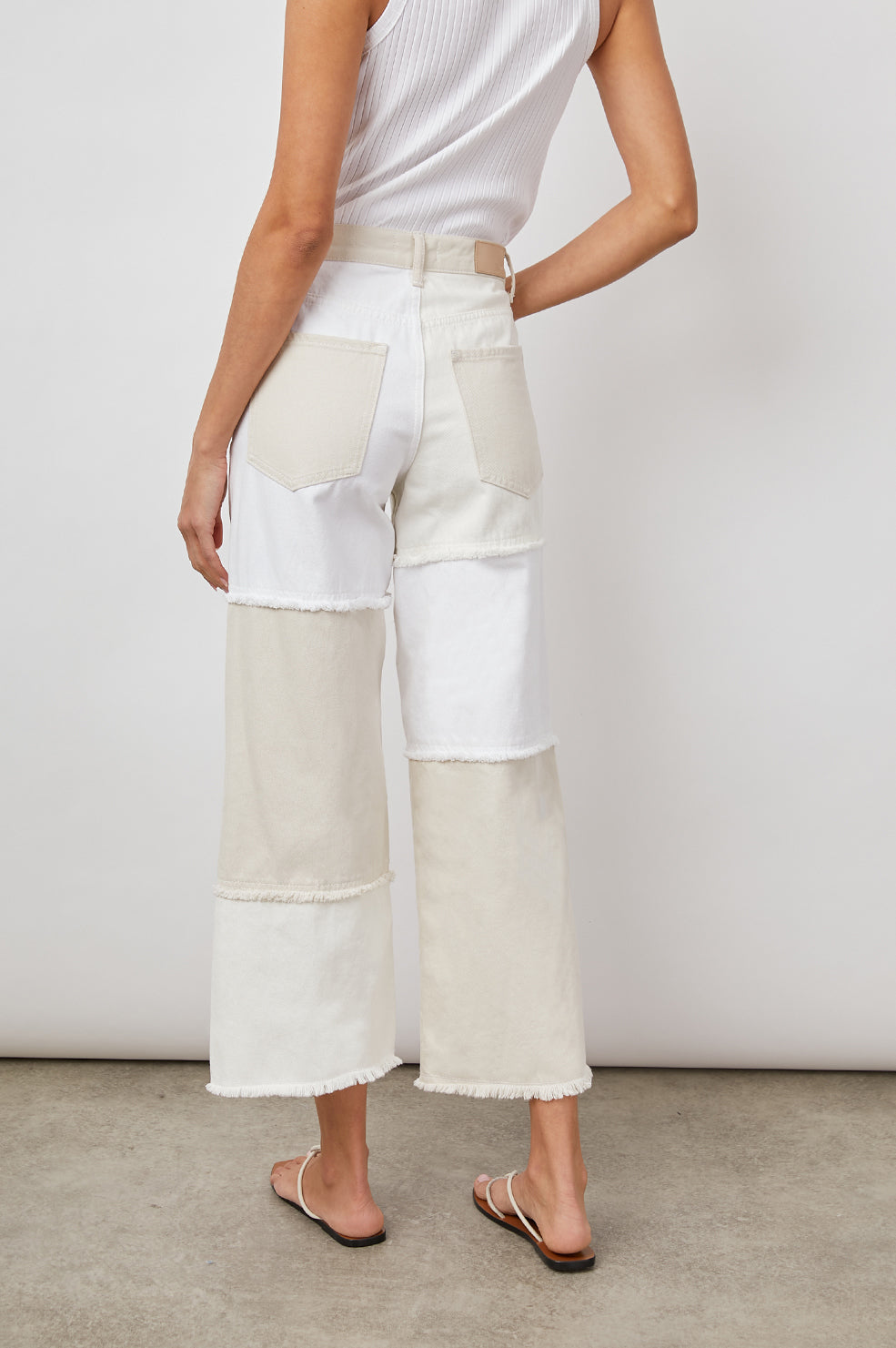 Your favorite fit, just a little shorter. The Getty Crop is a high waisted wide leg with a button fly and cropped inseam. Ecru Patchwork is perfectly patched with all of our favorite neutral shades updated in our soft comfort stretch fabrication.